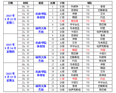 賽事時(shí)間:2015年09月23日-10月03日